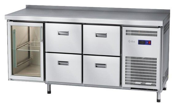 Морозильный стол Abat СХН-60-02 предназначен для раскатки теста, обработки ингредиентов для приготовления блюд, заморозки и хранения продуктов на предприятиях общественного питания и торговли. Модель оснащена регулируемой по высоте полкой-решеткой, 1 распашной дверцей из стекла и 4 выдвижными ящиками с уплотнителями с магнитной вставкой для обеспечения полной теплоизоляции и регулируемыми ножками.