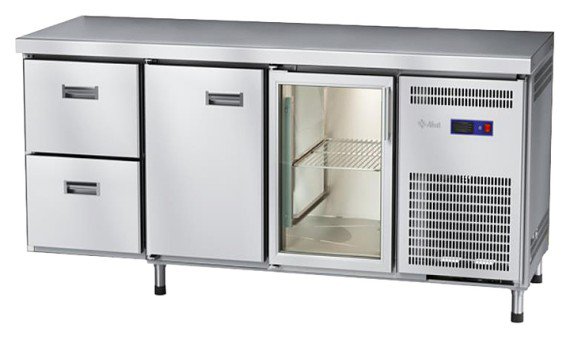 Стол морозильный Abat СХН-70-02 (1 дверь-стекло, 1 дверь, 2 ящика, без борта)