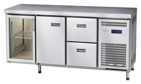 Стол морозильный Abat СХН-70-02 (2 ящика, 1 дверь, 1 дверь-стекло, без борта)