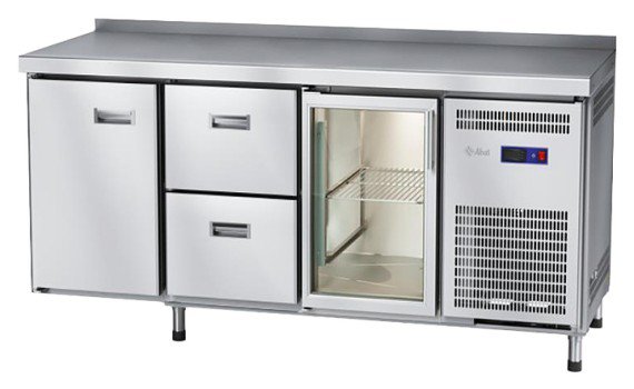 Стол морозильный Abat СХН-70-02 (1 дверь-стекло, 2 ящика, 1 дверь, борт)