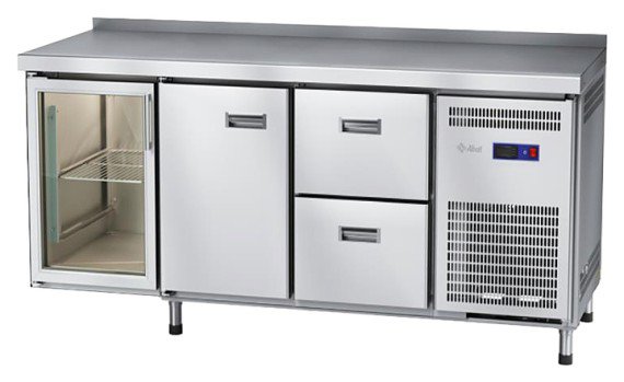 Стол морозильный Abat СХН-70-02 (2 ящика, 1 дверь, 1 дверь-стекло, борт)