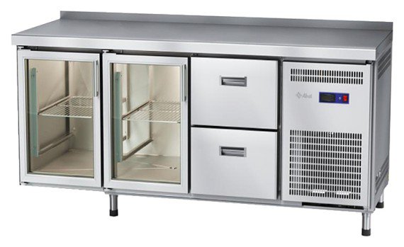 Стол морозильный Abat СХН-60-02 (2 ящика, 2 двери-стекло, борт)