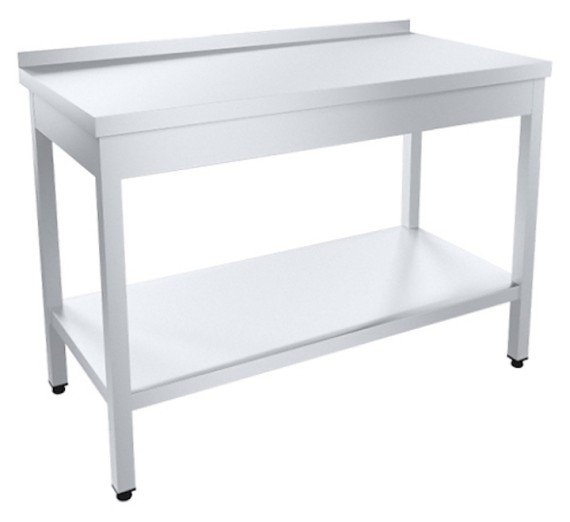 Разделочный стол Пищевые Технологии Профи СРОб-14/6П304НТ-М предназначен для разделки гастрономических продуктов перед их обработкой на предприятиях общественного питания. Модель оснащена ножками с винтовыми опорами. Каркас выполнен из трубы нержавеющей стали 40х40 мм, столешница - из нержавеющей стали AISI 304 с усилением из ЛДСП, полка - из нержавеющей стали AISI 430.