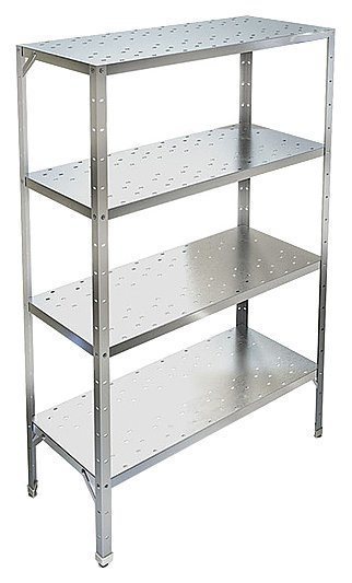 Кухонный стеллаж KAYMAN СК-451/0904 используется на предприятиях общественного питания и торговли, а также в промышленно-производственных заведениях для хранения различного оборудования, кухонных принадлежностей и сухих продуктов. Каркас выполнен из оцинкованного уголка 40х40 мм, полки - из нержавеющей стали AISI 430.