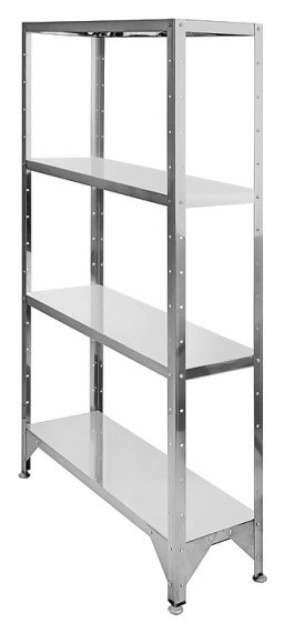 Кухонный стеллаж Hessen С-1,8*10*5/4 используется на предприятиях пищевой промышленности, общественного питания и торговли для хранения оборудования, посуды, инвентаря и сухих продуктов. Стеллаж оснащен 4 сплошными полками. Изделие произведено с использованием программы Technology without Injuries - комплекса технологических решений, направленных на уменьшение травмоопасности для персонала, работающего на оборудовании. Полки выполнены из пищевой нержавеющей стали толщиной 0,6 мм и усилены ребром жесткости, стойки - из оцинкованной стали толщиной 1,5 мм.