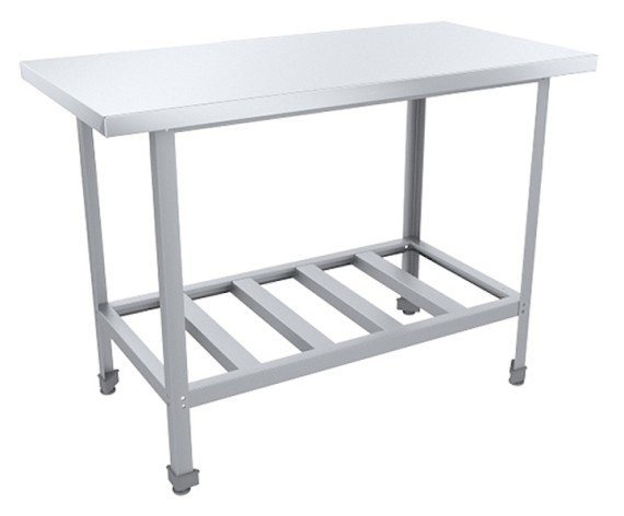 Разделочный стол Пищевые Технологии Стандарт СРО-14/7СЦК предназначен для разделки гастрономических продуктов перед их обработкой на предприятиях общественного питания. Модель оснащена регулируемыми по высоте ножками. Каркас выполнен из оцинкованного уголка, столешница - из нержавеющей стали AISI 430 с усилением из листа ЛДСП, полка-решетка - из нержавеющей стали AISI 430.