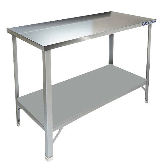 Производственный стол KAYMAN СЦ-242/0807 используется на предприятиях общественного питания и торговли для раскатки теста и обработки ингредиентов для приготовления блюд, а также как дополнительное место для установки и хранения кухонных приборов, инвентаря и сухих продуктов. Модель оснащена сплошной полкой-накладкой. Каркас изготовлен из нержавеющего уголка AISIS 430, толщиной 1,5 мм, полка из нержавеющей стали AISI 430, толщиной 0,8 мм, столешница без борта - из нержавеющей стали AISI 430, толщиной 0,8 мм, усиление ЛДСП 16 мм.