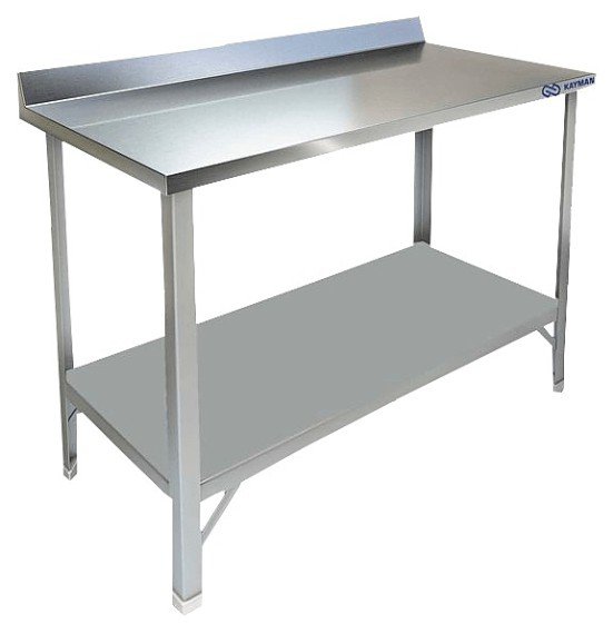 Производственный стол KAYMAN СП-242/0808 используется на предприятиях общественного питания и торговли для раскатки теста и обработки ингредиентов для приготовления блюд, а также как дополнительное место для установки и хранения кухонных приборов, инвентаря и сухих продуктов. Модель оснащена сплошной полкой-накладкой и плоским бортом. Каркас изготовлен из нержавеющего уголка AISIS 430, толщиной 1,5 мм, полка из нержавеющей стали AISI 430, толщиной 0,8 мм, столешница - из нержавеющей стали AISI 430, толщиной 0,8 мм, усиление ЛДСП 16 мм.