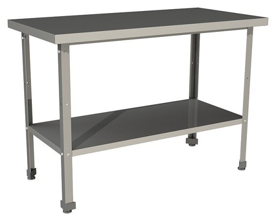 Производственный островной стол Restoinox СП-15/8-П-ЭК серии 800 предназначен для обработки продуктов питания, раскатки теста и хранения кухонного инвентаря, также для размещения малогабаритного оборудования на предприятиях общественного питания и торговли. Модель оснащена регулируемыми по высоте опорами и сплошной полкой. Ножки выполнены из уголка оцинкованной стали 40x40 мм, рабочая поверхность - из нержавеющей стали Aisi 430, полка - из оцинкованной стали, столешница усилена листом ЛДСП.