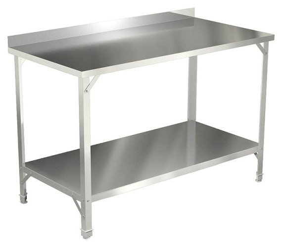 Производственный стол Техно-ТТ AppetiTT СПСП-1806н предназначен для разделки и обработки пищевых продуктов, а также для расстановки и хранения посуды и кухонного инвентаря на предприятиях общественного питания и торговли. Модель оснащена бортом. Столешница выполнена из нержавеющей стали AISI 430 с подложкой из ДСП, разборный каркас - из нержавеющей стали AISI 430 толщиной 1,5 мм, сплошная полка - из нержавеющей стали AISI 430 толщиной 0,5 мм с усилителем.
