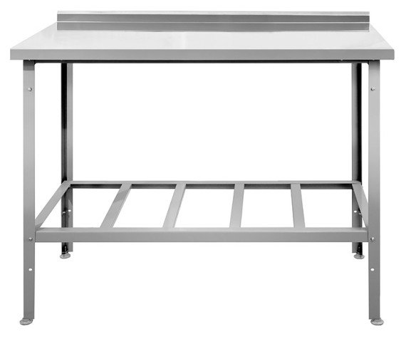 Производственный стол Hessen СПП 12/8 используется на предприятиях пищевой промышленности, общественного питания и торговли как для работы с продуктами питания, так и для хранения на нем посуды и кухонного инвентаря. Изделие произведено с использованием программы Technology without Injuries - комплекса технологических решений, направленных на уменьшение травмоопасности для персонала, работающего на оборудовании. Каркас и полка выполнены из нержавеющей стали AISI 430, столешница - из пищевой нержавеющей стали с укреплением из ламинированного ДСП.