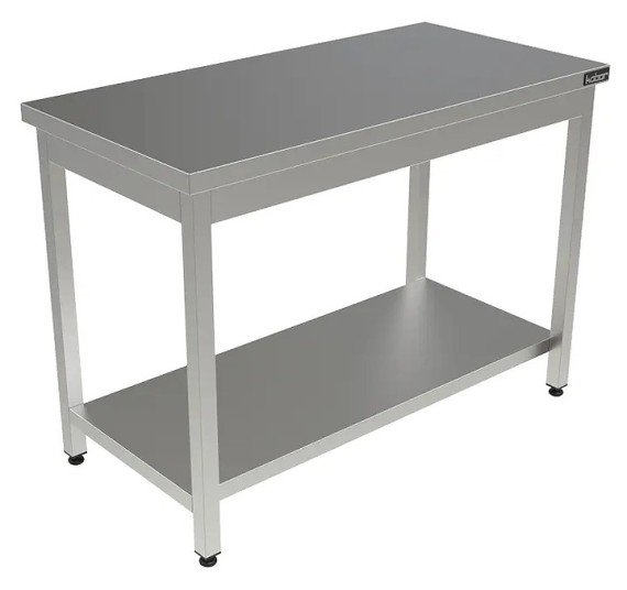Производственный стол Кобор СПР-60/70/П предназначен для обработки продуктов питания и хранения кухонного инвентаря на предприятиях общественного питания и торговли. Разборный каркас выполнен из оцинкованной стальной квадратной трубы 40х40 мм, столешница - из нержавеющей стали AISI 430 с усилением из ЛДСП.