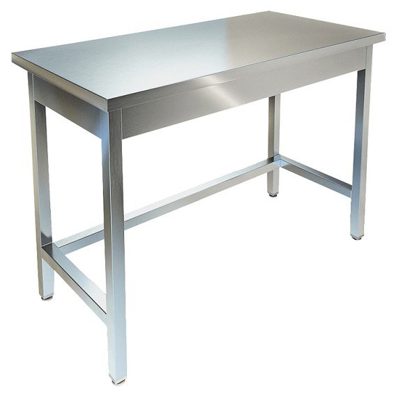Производственный стол KAYMAN СЦ-226/1407 используется на предприятиях общественного питания и торговли для раскатки теста и обработки ингредиентов для приготовления блюд, а также как дополнительное место для установки и хранения кухонных приборов, инвентаря и сухих продуктов. Каркас выполнен из нержавеющей трубы AISI 430 40х40 мм толщиной стенки 1,2 мм, обвязан с трех сторон, столешница - из нержавеющей стали AISI 430 толщиной 0,8 мм, усилена листом ЛДСП 16 мм.