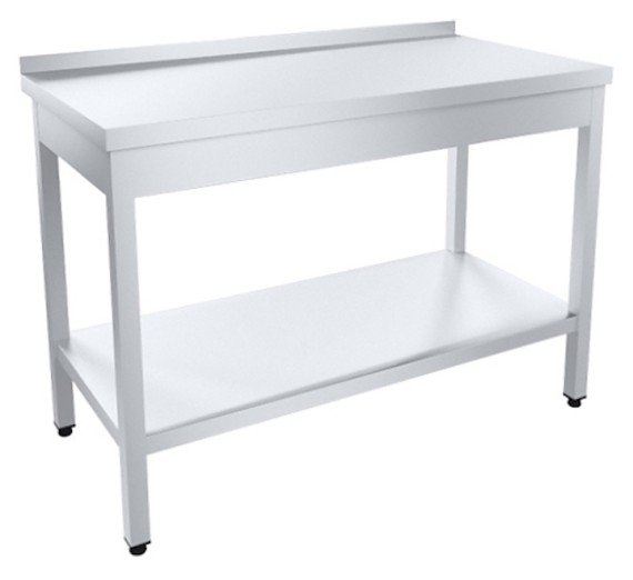 Разделочный стол Пищевые Технологии Профи СРОб-12/8ПНТ-М предназначен для разделки гастрономических продуктов перед их обработкой на предприятиях общественного питания. Модель оснащена ножками с винтовыми опорами. Каркас выполнен из трубы нержавеющей стали 40х40 мм, столешница - из нержавеющей стали AISI 430 с усилением из ЛДСП, полка - из нержавеющей стали AISI 430.