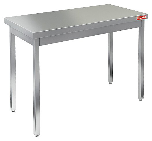 Столешница выполнена из нержавеющей стали толщиной 1 мм, усилена ребрами жесткости, опорные ножки - из трубы 40х40 мм из нержавеющей стали.