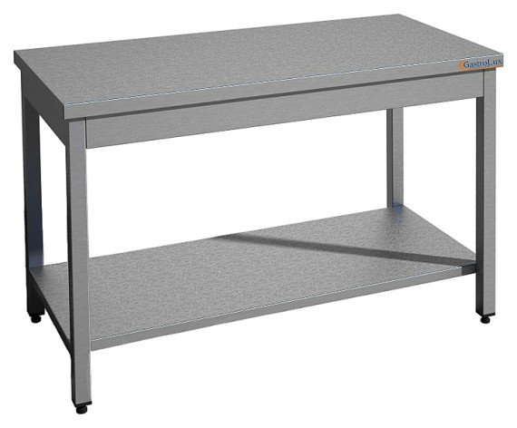 Производственный стол Gastrolux СП-106/S серии Standart используется на предприятиях общественного питания и торговли, в пекарнях, кондитерских и производственных помещениях для раскатки теста и обработки ингредиентов для приготовления блюд, а также в качестве дополнительного места для установки и хранения кухонных приборов и посуды. Каркас выполнен из нержавеющего профиля 40х40.