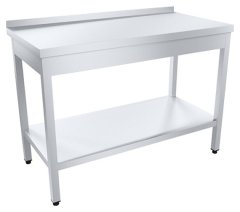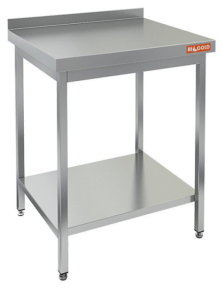 Столешница выполнена из нержавеющей стали толщиной 0,8 мм, усилена листом ДСП, опорные ножки - из трубы 40х40 мм из нержавеющей стали.
