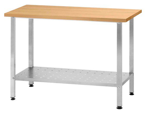 Кондитерский стол Mecon Norma Ral СПРн предназначен для разделывания и обработки пищевых продуктов, раскатки теста, а также в качестве вспомогательной поверхности для кухонного оборудования на предприятиях пищевой промышленности, общественного питания и торговли. Модель оснащена усиленной перфорированной полкой и регулируемыми по высоте полиамидными опорами. Каркас выполнен из профильной трубы 40х40 мм с полимерно-порошковым покрытием с базирующими пуклевками, столешница - из бука, полка - из стали с полимерно-порошковым покрытием.