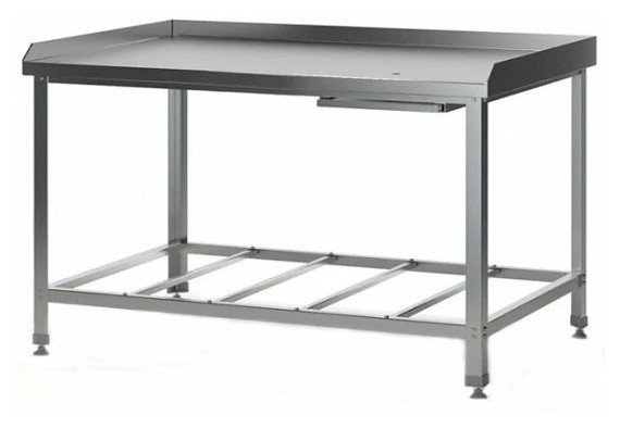 Производственный стол Restoinox СПМ-12/8-3БР-ЭЦ предназначен для обработки продуктов питания, раскатки теста и хранения кухонного инвентаря, также для размещения малогабаритного оборудования на предприятиях общественного питания и торговли. Модель оснащена регулируемыми по высоте опорами, 3 бортами и полкой-решеткой. Ножки выполнены из уголка оцинкованной стали 40x40 мм, рабочая поверхность - из нержавеющей стали Aisi 430, решетка - из оцинкованной стали, столешница усилена листом ЛДСП.
