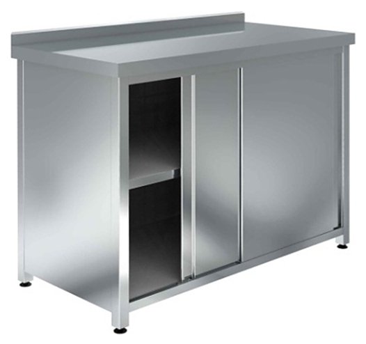 Производственный стол Assum СПКБ-С-10/7 серии Стандарт предназначен для раскатки теста и обработки ингредиентов для приготовления блюд, а также хранения посуды и кухонного инвентаря на предприятиях общественного питания и торговли. Модель оснащена прямоугольной столешницей с бортом, тумбой с дверьми-купе и промежуточной сплошной полкой. Опоры выполнены из углового профиля из оцинкованной стали, столешница и двери – из высококачественной нержавеющей стали AISI 430, боковые стенки, дно, двери и полка – из оцинкованной стали, подпятники опор – из прочного пластика.