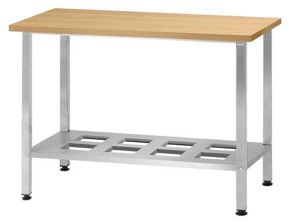 Кондитерский стол Mecon Norma Ral СПРн предназначен для разделывания и обработки пищевых продуктов, раскатки теста, а также в качестве вспомогательной поверхности для кухонного оборудования на предприятиях пищевой промышленности, общественного питания и торговли. Модель оснащена усиленной полкой-решеткой и регулируемыми по высоте полиамидными опорами. Каркас выполнен из профильной трубы 40х40 мм с полимерно-порошковым покрытием с базирующими пуклевками, столешница - из бука, полка - из стали с полимерно-порошковым покрытием.