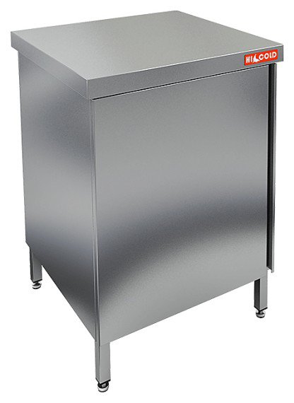 Производственный стол HICOLD НСЗ-6/7Л с открывающейся дверцей на левую сторону предназначен для раскатки теста и обработки ингредиентов для приготовления блюд, а также может использоваться в качестве дополнительного места для установки кухонных приборов на предприятиях пищевой промышленности, общественного питания и торговли, в пекарнях и кондитерских.