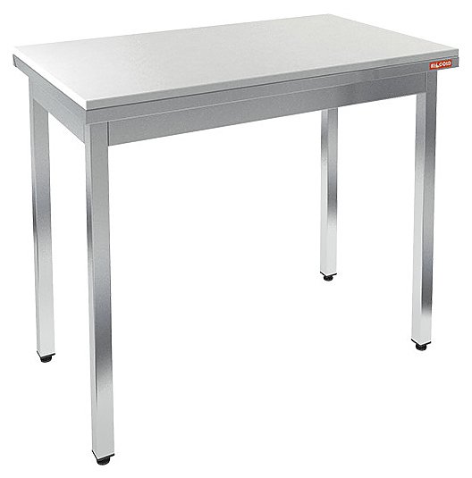 Столешница выполнена из полипропилена, опорные ножки - из трубы 40х40 мм из нержавеющей стали.
