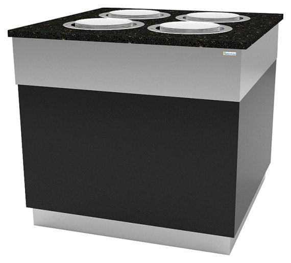 Диспенсер для тарелок Gastrolux ПТТ-1010/SI используется в составе линий раздач Stone Island предназначен для хранения кухонной посуды с соблюдением правильного температурного режима, гигиенических норм и правил в составе линий раздач на предприятиях общественного питания с организацией питания по принципу "шведский стол".