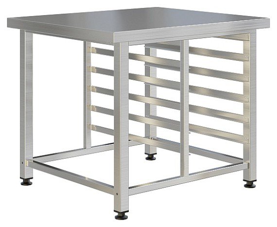 Подставка Restoinox ППКР-1-86/71 предназначена для размещения пароконвектоматов Rational ICOMBI PRO 6-1/1, ICOMBI PRO 10-1/1, ICOMBI CLASSIC 6-1/1, ICOMBI CLASSIC 10-1/1 на предприятиях общественного питания и торговли. Модель оснащена регулируемыми по высоте опорами. Разборный каркас выполнен из трубы 40х40 мм нержавеющей стали Aisi 430, направляющие и столешница - из нержавеющей стали Aisi 430.
