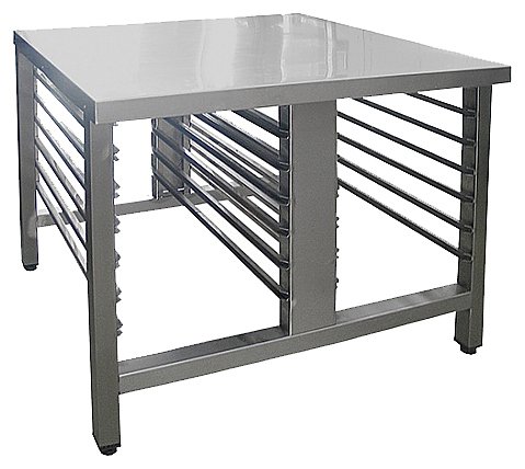 Подставка Пищевые Технологии ПК-12 используется совместно с пароконвектоматами. Модель оснащена регулируемыми по высоте ножками. Каркас выполнен из нержавеющей трубы.