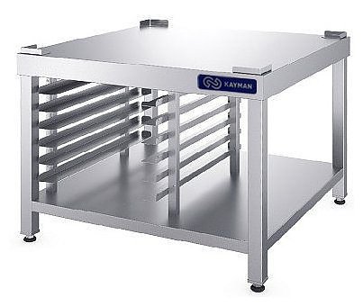 Подставка KAYMAN ПО-191/0808-05-А используется для установки пароконвектомата электрического на предприятиях общественного питания и торговли. Модель оснащена столешницей, полкой, направляющими, регулируемыми по высоте опорами и в верхней части столешницы по углам установлены упоры. Разборный каркас выполнен из трубы 40х40 мм нержавеющей стали AISI 304, стоики - из стали AISI 210.