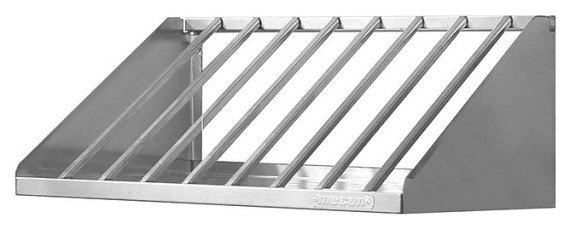 Настенная кухонная полка Mecon Norma Inox СКВн используется на предприятиях общественного питания и торговли для сушки и хранения крышек в вертикальном положении. Модель оснащена боковыми панелями «косынками», перфорированной рабочей поверхностью, задним бортом и решеткой с 6 ячейками из расположенных под наклоном направляющих. Изделие выполнено из нержавеющей стали, упаковка – из гофрокартона и термоусадочной пленки.