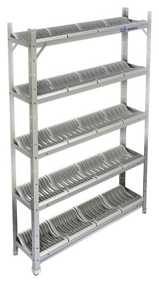 Cтеллаж KAYMAN СКТ-251/1203 используется на предприятиях общественного питания и торговли для сушки и хранения тарелок. Каркас выполнен из оцинкованного уголка, полки - из нержавеющей стали AISI 430, поддон - из нержавеющей стали AISI 308, кассеты - из пластмассы.