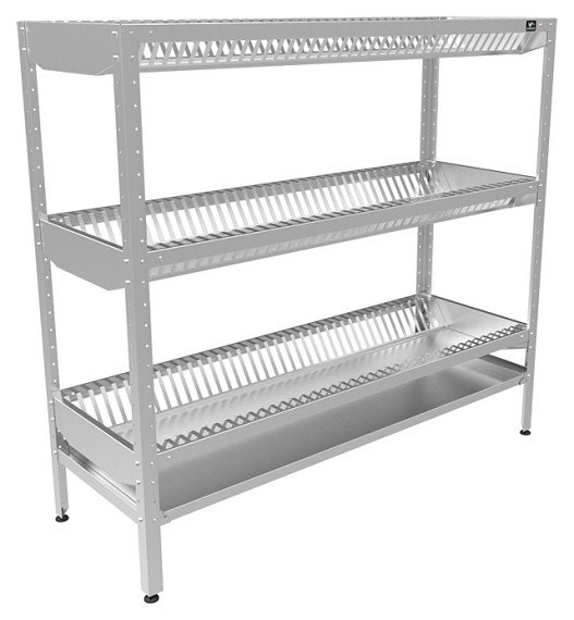 Стеллаж Кобор СДП-100/53/430 предназначен для хранения и сушки тарелок на предприятиях общественного питания и торговли. Модель оснащена съемным поддоном для слива воды и колесами. Каркас выполнен в виде уголка из нержавеющей стали AISI 430, полки - из нержавеющей стали AISI 430.