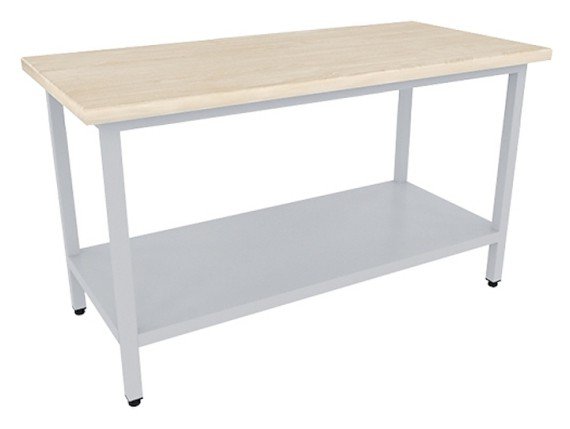 Кондитерский стол Пищевые Технологии СРОк-Н 12/7 предназначен для обработки продуктов питания, раскатки теста и хранения кухонного инвентаря на предприятиях общественного питания и торговли. Модель оснащена сплошной полкой и регулируемыми по высоте винтовыми опорами. Каркас выполнен из нержавеющей трубы квадратного сечения, столешница - из массива бука, полка - из нержавеющей стали.