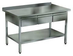 Кондитерский стол KAYMAN СЦ-342/1508 используется на предприятиях общественного питания и торговли для разделки и обработки пищевых продуктов, а также для расстановки и хранения посуды и кухонного инвентаря. Модель оснащена ножками с регуляторами высоты и полкой-накладкой. Разборный каркас выполнен из уголка нержавеющей стали AISI 430 толщиной 1,5 мм, полка-накладка из нержавеющей стали AISI 430, толщиной 0,5 мм, столешница - из бука толщиной 40 мм.