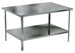 Столешница выполнена из нержавеющей стали толщиной 0,8 мм, усилена листом ДСП, опорные ножки - из трубы 40х40 мм из нержавеющей стали.