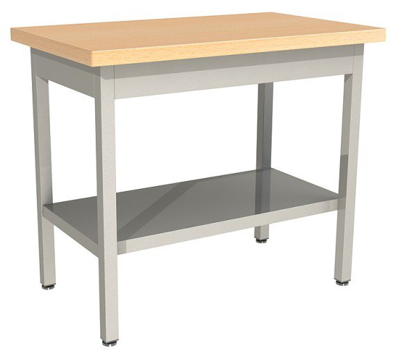 Кондитерский стол Restoinox СПК-10/6-П предназначен для разделки и обработки пищевых продуктов, а также для расстановки и хранения посуды и кухонного инвентаря на предприятиях общественного питания и торговли. Модель оснащена регулируемыми по высоте опорами и сплошной полкой. Ножки выполнены из квадратной трубы 40х40 мм нержавеющей стали Aisi 430, полка - из нержавеющей стали Aisi 430, столешница - из бука.