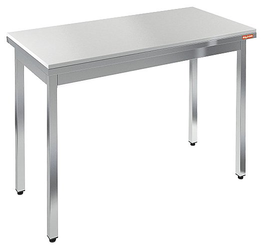Столешница выполнена из полипропилена, опорные ножки - из трубы 40х40 мм из нержавеющей стали.