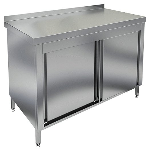 Производственный стол Hessen СТКП 12/6 используется на предприятиях пищевой промышленности, общественного питания и торговли как для работы с продуктами питания, так и для хранения посуды, кухонного инвентаря и сухих продуктов. Изделие произведено с использованием программы Technology without Injuries - комплекса технологических решений, направленных на уменьшение травмоопасности для персонала, работающего на оборудовании. Каркас, дверки и полка выполнены из нержавеющей стали, столешница - из пищевой нержавеющей стали с укреплением из ламинированного ДСП.