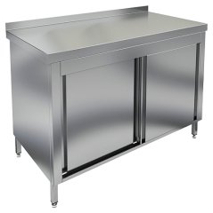 Производственный стол ATESY СТ-С-1.150-1200.600-02-Р-2П серии Стандарт используется на предприятиях общественного питания и торговли для разделывания и обработки пищевых продуктов, а также в качестве вспомогательной поверхности для кухонного оборудования. Модель оснащена 3 распашными дверцами и 2 переставными полками. Изделие выполнено из легированной стали, столешница дополнительно укреплена листом ламинированной древесностружечной плиты с внутренней стороны.