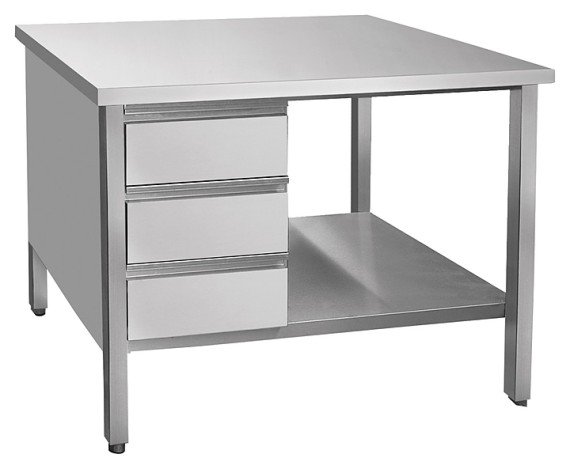 Производственный стол Abat СТО-7-3 предназначен для раскатки теста, обработки ингредиентов для приготовления блюд, хранения кухонных принадлежностей и продуктов, не требующих специального температурного режима на предприятиях общественного питания и торговли. Модель оснащена регулируемыми по высоте ножками.