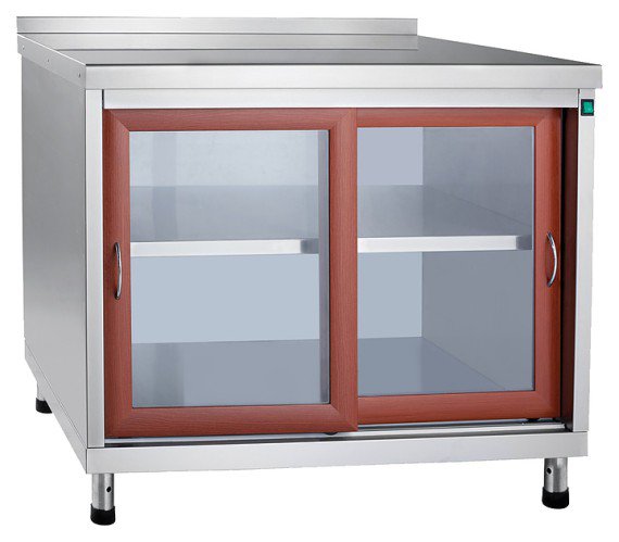 Конструкция выполнена из нержавеющей стали, дверцы - из стекла в раме из МДФ.