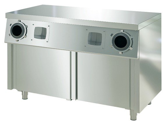 Стол-тумба ATESY СТД-2/1200-2 используется на предприятиях общественного питания и торговли для комплексного оснащения рабочего места раздачи холодных и горячих напитков. Изделие выполнено из пищевой нержавеющей стали AISI 430.