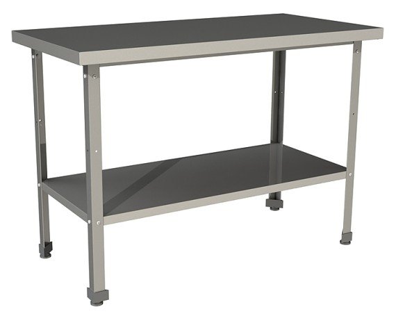 Производственный островной стол Restoinox СП-6/8-П-ЭК серии 800 предназначен для обработки продуктов питания, раскатки теста и хранения кухонного инвентаря, также для размещения малогабаритного оборудования на предприятиях общественного питания и торговли. Модель оснащена регулируемыми по высоте опорами и сплошной полкой. Ножки выполнены из уголка оцинкованной стали 40x40 мм, рабочая поверхность - из нержавеющей стали Aisi 430, полка - из оцинкованной стали, столешница усилена листом ЛДСП.