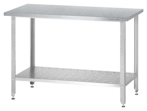 Производственный стол Mecon Retail СПРр предназначен для разделывания и обработки пищевых продуктов, а также в качестве вспомогательной поверхности для кухонного оборудования на предприятиях пищевой промышленности, общественного питания и торговли. Модель имеет разборный каркас, оснащена усиленной перфорированной полкой и регулируемыми по высоте опорами. Ножки выполнены из гнутого углового профиля оцинкованной стали с дополнительными подгибами и базирующими пуклевками, столешница - из оцинкованной стали с усилением подложкой из ДСП, полка - из оцинкованной стали.