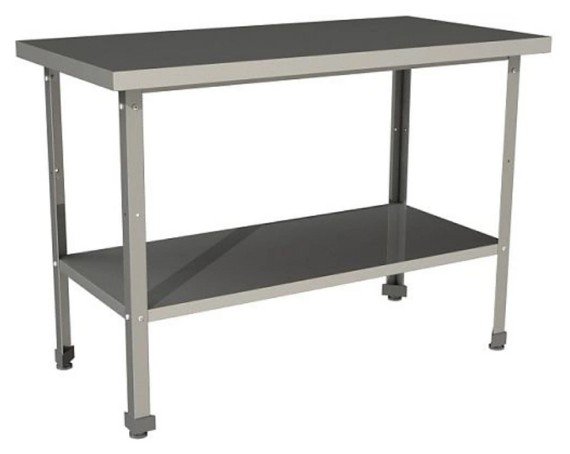 Производственный островной стол Restoinox СП-4/6-П-ЭН серии 600 предназначен для обработки продуктов питания, раскатки теста и хранения кухонного инвентаря, также для размещения малогабаритного оборудования на предприятиях общественного питания и торговли. Модель оснащена регулируемыми по высоте опорами и сплошной полкой. Ножки выполнены из уголка нержавеющей стали Aisi 430 40x40 мм, рабочая поверхность и полка - из нержавеющей стали Aisi 430, столешница усилена листом ЛДСП.