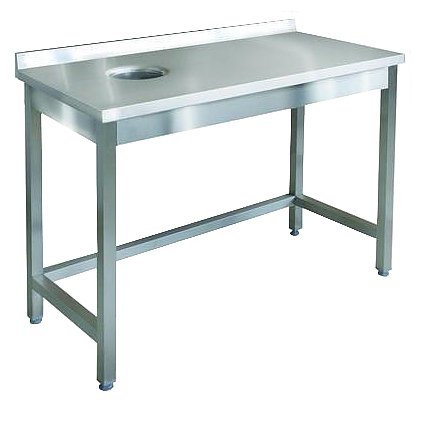 Стол ITERMA 430 СБ-241/607 используется на предприятиях общественного питания и торговли для разделки и обработки пищевых продуктов, а также для сбора отходов, появляющихся в процессе этой работы. Модель оснащена ножками, регулирующимися по высоте. Изделие выполнено из нержавеющей стали AISI 430. Отверстие для сбора отходов расположено слева.