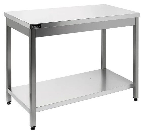 Производственный стол Koбор СП-130/80/87 используется на предприятиях общественного питания и торговли для разделывания и обработки пищевых продуктов, а также в качестве вспомогательной поверхности для кухонного оборудования. Каркас выполнен из трубы 40х40 нержавеющей стали, столешница и полка - из нержавеющей стали AISI 430, столешница укреплена листом ламинированной древесностружечной плиты с внутренней стороны.