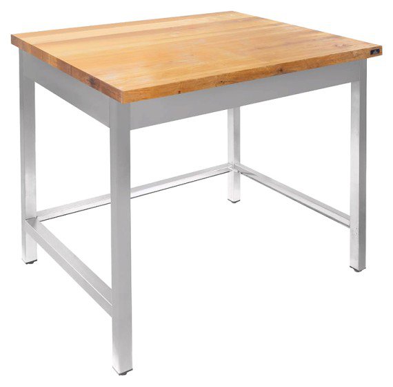 Стол Luxstahl СК-9/8 предназначен для раскатки теста, приготовления различных блюд и заготовок в кондитерских, пекарнях и на других предприятиях общественного питания и торговли. Модель оснащена прямоугольной столешницей. Столешница выполнена из дерева твердых пород, каркас – из нержавеющей стали AISI 430, опоры – из профиля трубы из нержавеющей стали AISI 430, подпятники опор – из прочного пластика.